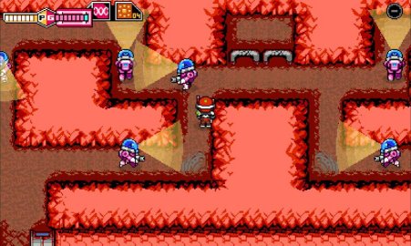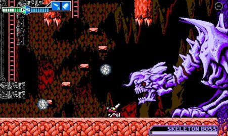 The most infamous of these segments is found in Stage 7, the cave, near the stage's end portion. In this segment, you have to descend down a 45-degree passage and do so while avoiding falling stalactites, which kill you in one hit. To successfully clear this segment, you have to fly down in a very particular motion while moving at just the right speed. It's hard to discover and execute the required combination of movement qualities, and if you're unable to do so, you could wind up dumping all of your lives and continues (you only get two of these) and coming away with the feeling that this segment is just plain unfair.