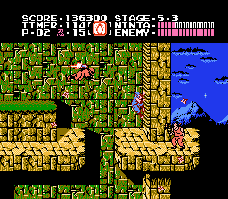 Imagine suffering 20 or 30 deaths in a row because you kept getting hit by a bird whose spawn point was placed near the midpoint of a long do-or-die jump whose target was a one-tile-wide platform that was occupied by a large, mobile sword-wielder. Now think of what it would be like if that same sequence of events repeated twice per area and five times per stage. That horrific scene you're visualizing right now--well, it's the single most accurate representation of the Ninja Gaiden experience. For certain, it's the single most accurate representation of my Ninja Gaiden experience.